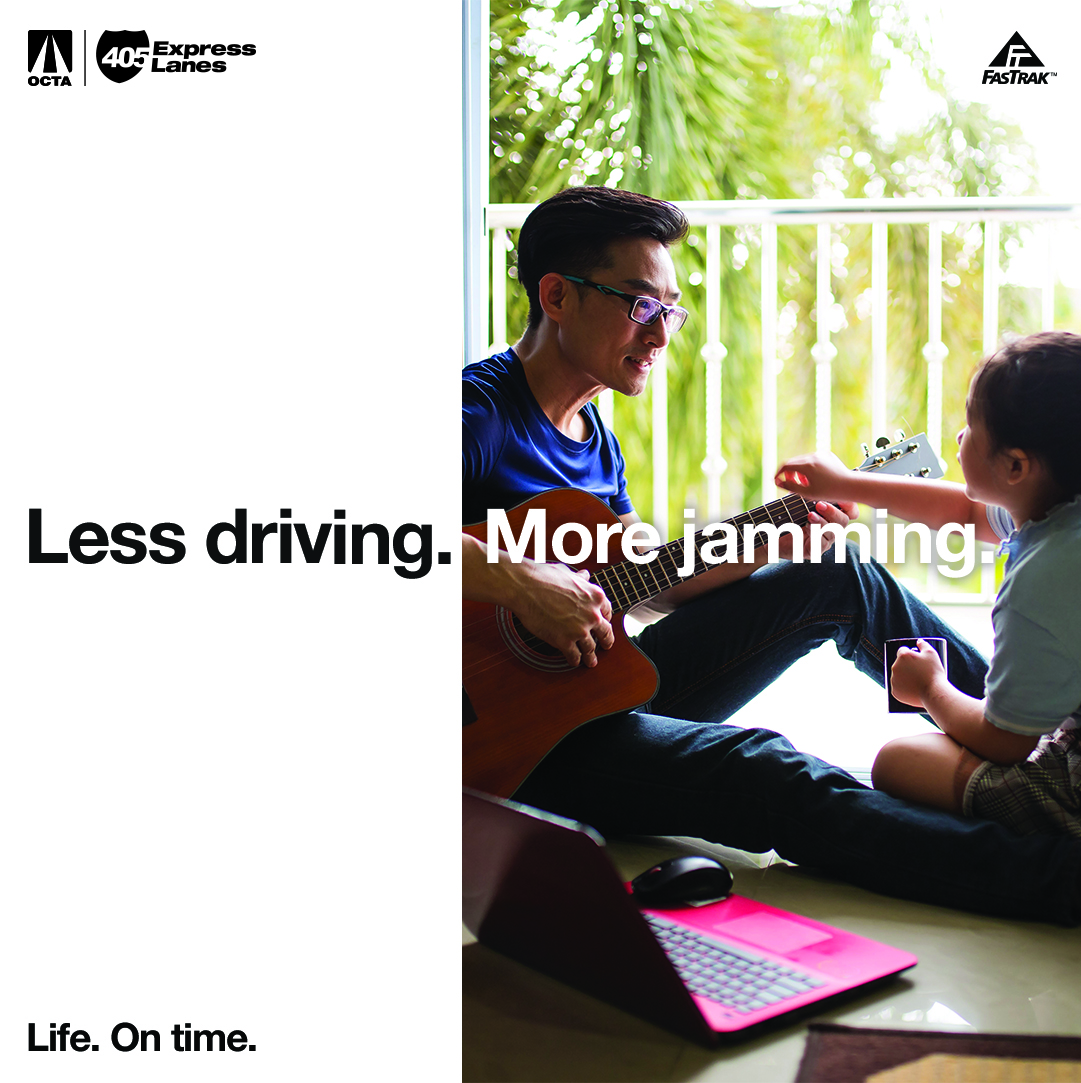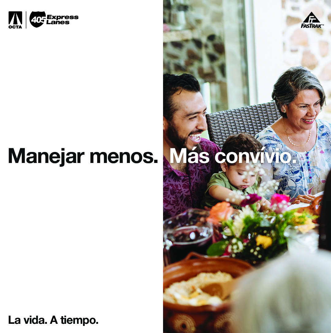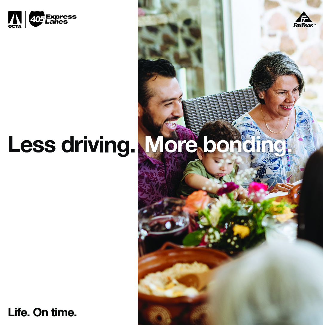 OCTA's new 14-mile 405 Express Lanes will ease congestion with FasTrak® electronic tolling. Traffic that moves lets you go with the flow and connect sooner to your best things in life.