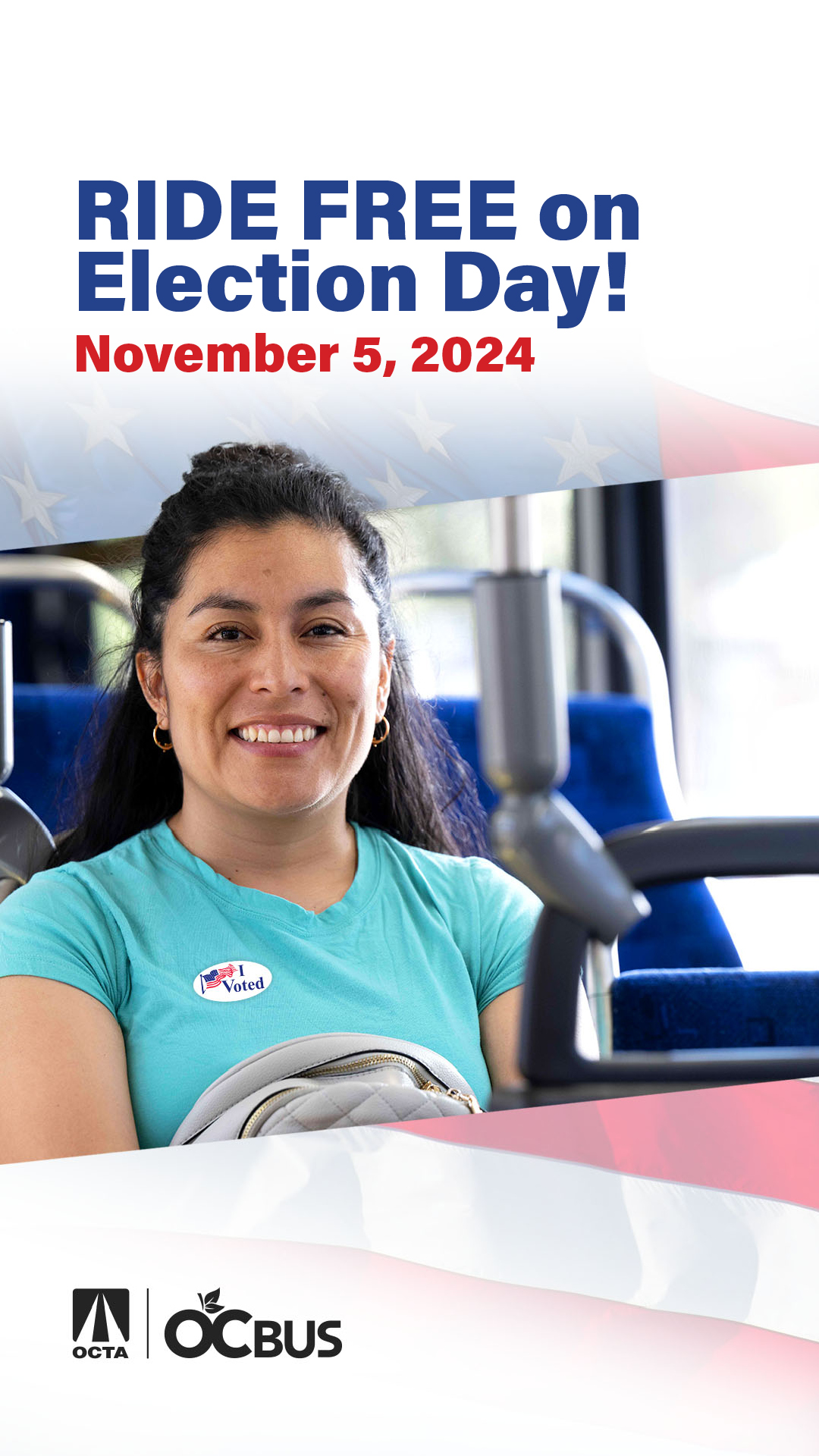 On November 5, take advantage of free OC Bus rides to reach your polling place or any destination. Ride for free all day—no bus pass required.