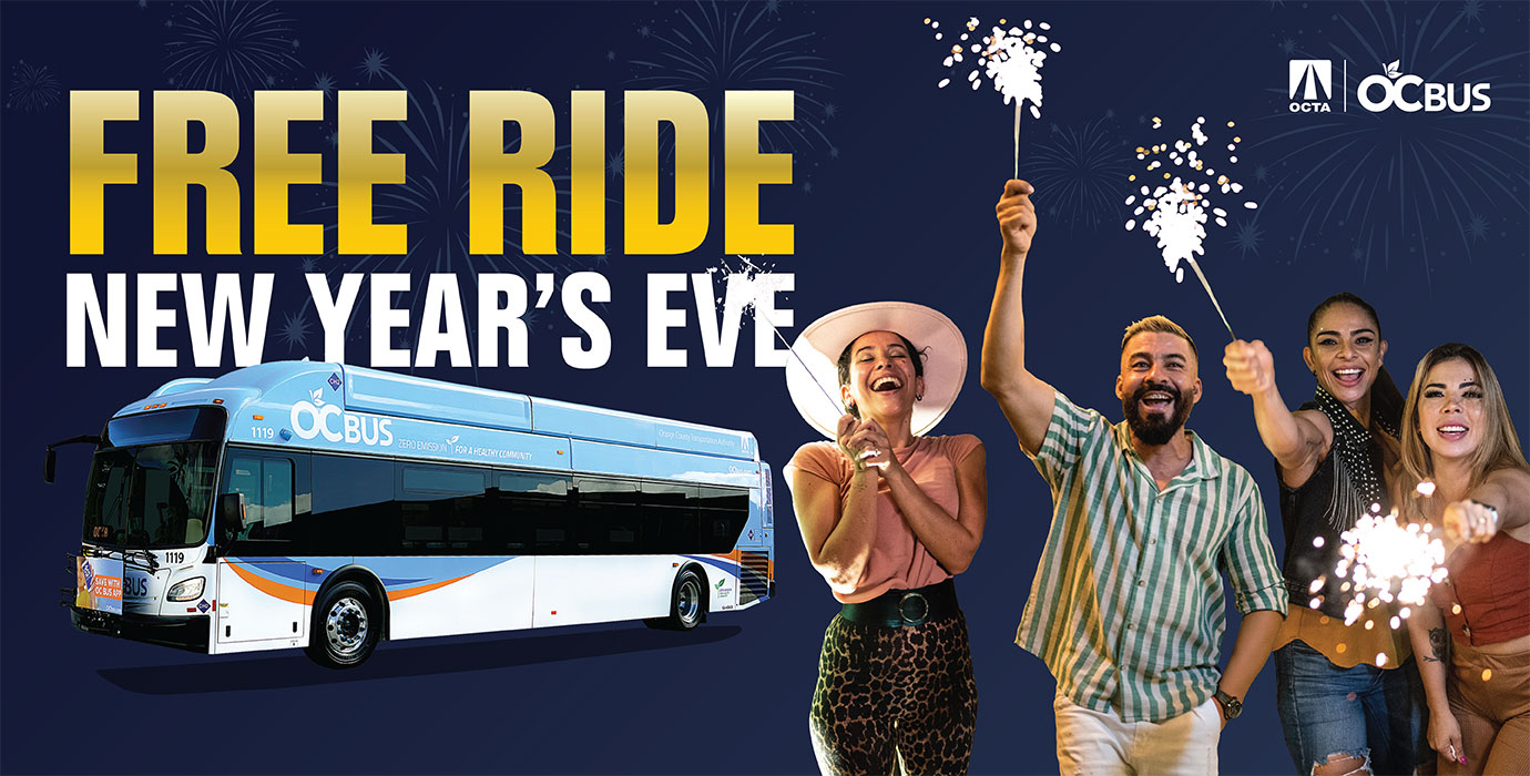 Celebrate stress-free on New Year's Eve! Ride OC Bus FREE for a safe ride to your destination and back.