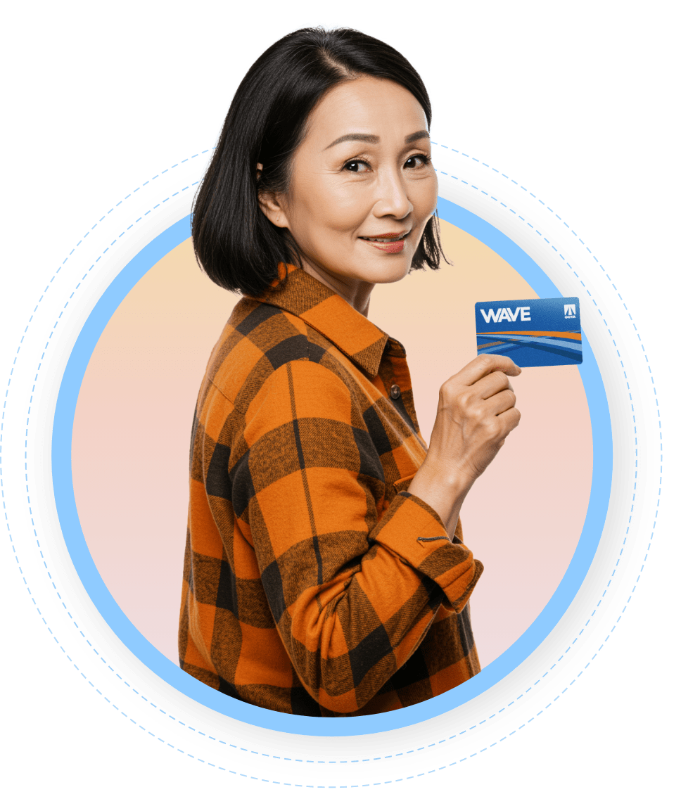 - Si no cuenta con una tarjeta Wave al momento de solicitar la tarifa reducida, tendrá la opción de solicitar que OCTA le envíe una tarjeta Wave. La primera tarjeta Wave que le proporcione OCTA no tendrá costo alguno. La tarjeta Wave que reciba estará vinculada a su cuenta Wave en línea y se asignará como su tarjeta Wave con tarifa reducida para personas mayores una vez que su solicitud haya sido aprobada.