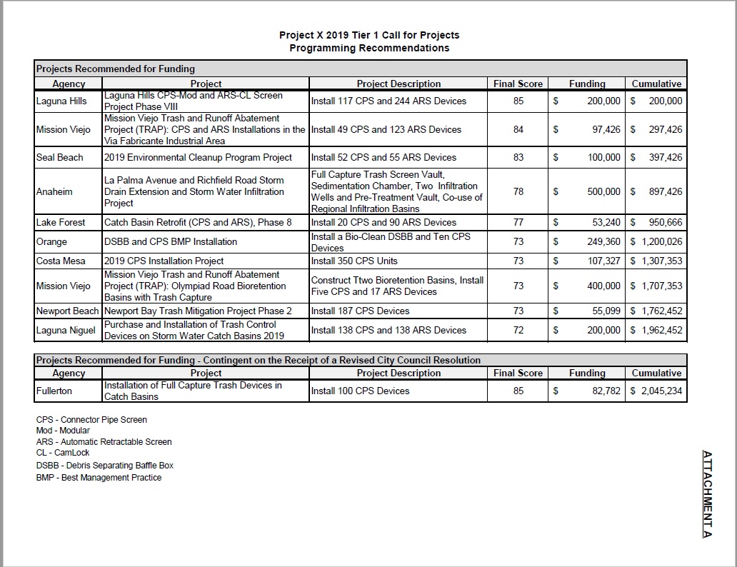 The OCTA board has approved funding for nearly 150 projects since the inception of this program in 2011, totaling approximately $19 million. It is estimated that more than 1 million cubic feet of trash has since been captured as a result of the installation of these devices.