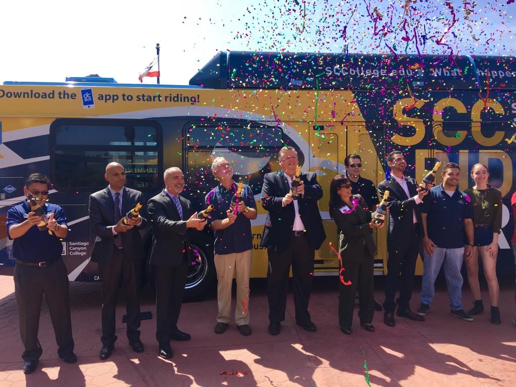 Photo attached: Officials with the Orange County Transportation Authority and Santiago Canyon College join with students in marking the launch of the College Student Bus Pass Program on Wednesday, Sept. 26 in the city of Orange. Photo courtesy of OCTA.