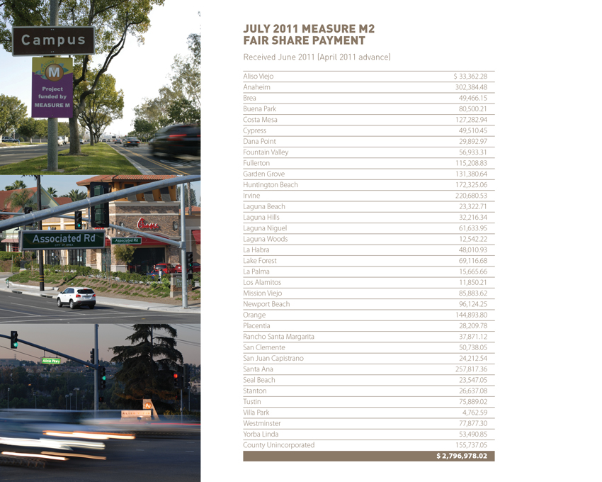 M1 Road Improvements | M2 Fair Share Payment | M1FY 10 - 11 Net Project Costs | M2 Schedule of New Project Costs