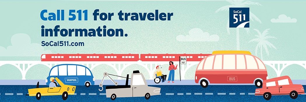 Accessible 24/7 throughout Orange County—and even while traveling in Los Angeles and Ventura counties—the 511 system keeps you connected on the go. Just call 511 or visit So Cal 511 to get traffic and transit updates.