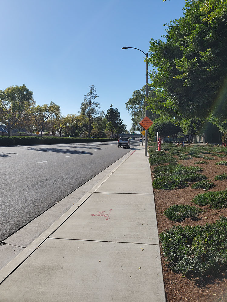 Crews have completed the demolition of the sidewalk and are now relocating utilities on the westbound side of Katella Avenue. This work is slated to continue for several months before the sidewalk is reconstructed later this year.