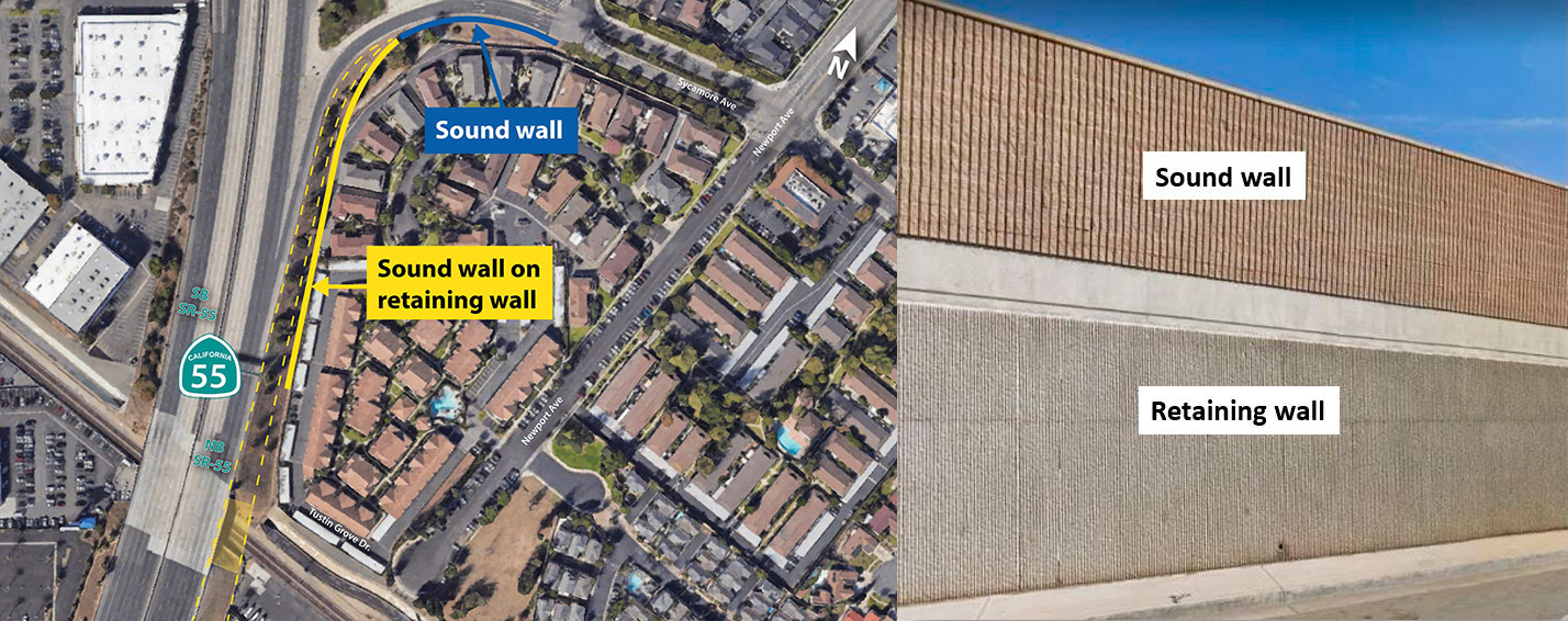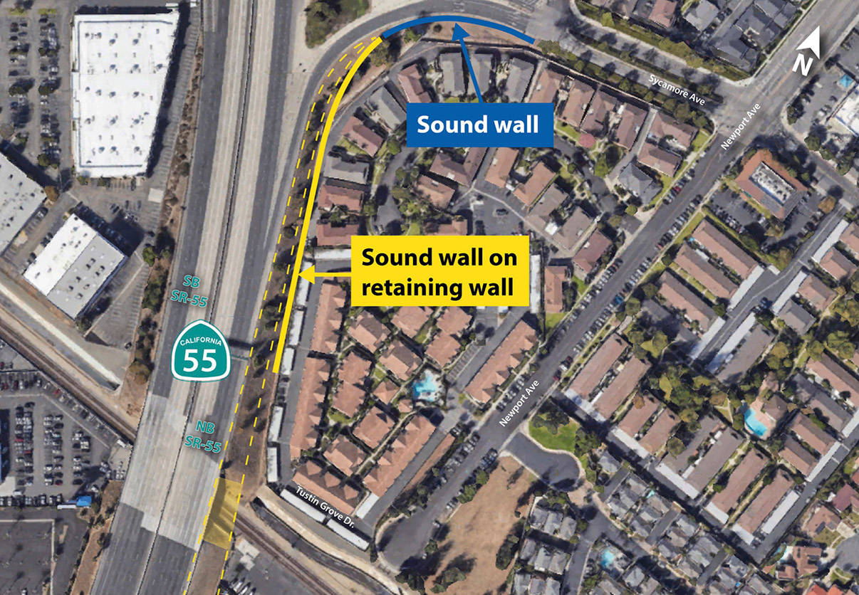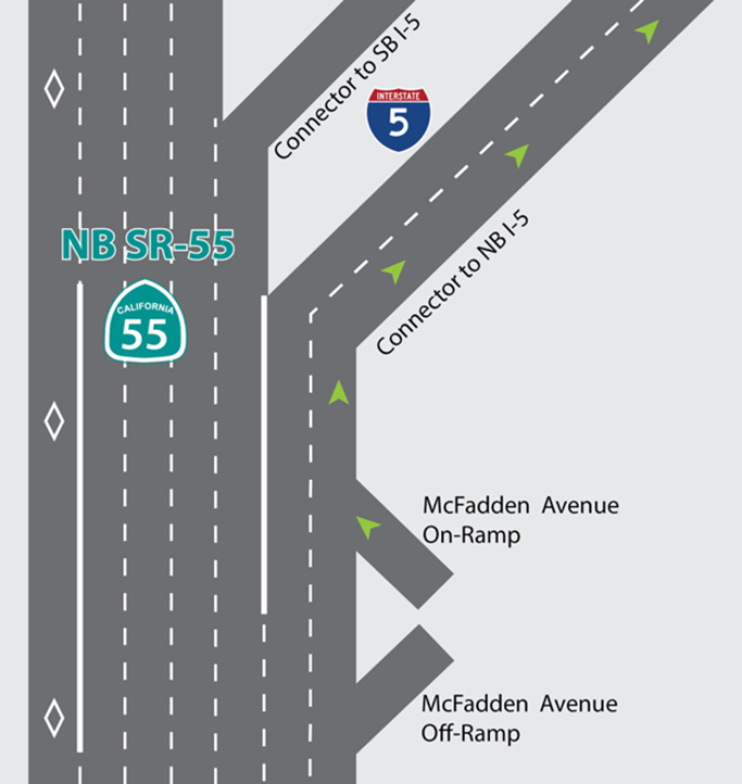 A new drainage system is being constructed along northbound SR-55 adjacent to the Kenyon Pointe and El Paseo properties. Crews are currently constructing the new drainage system and will remove the existing drainage system once the new one is in place.